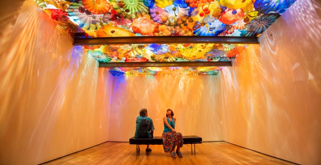 If you head downtown, the Oklahoma City Museum of Art offers something striking. Its Chihuly glass collection is anchored by the Eleanor Blake Kirkpatrick Memorial Tower, a 55-foot, around 17 m, glass installation that fills the atrium and makes you pause, even if glass art has never been your thing.
