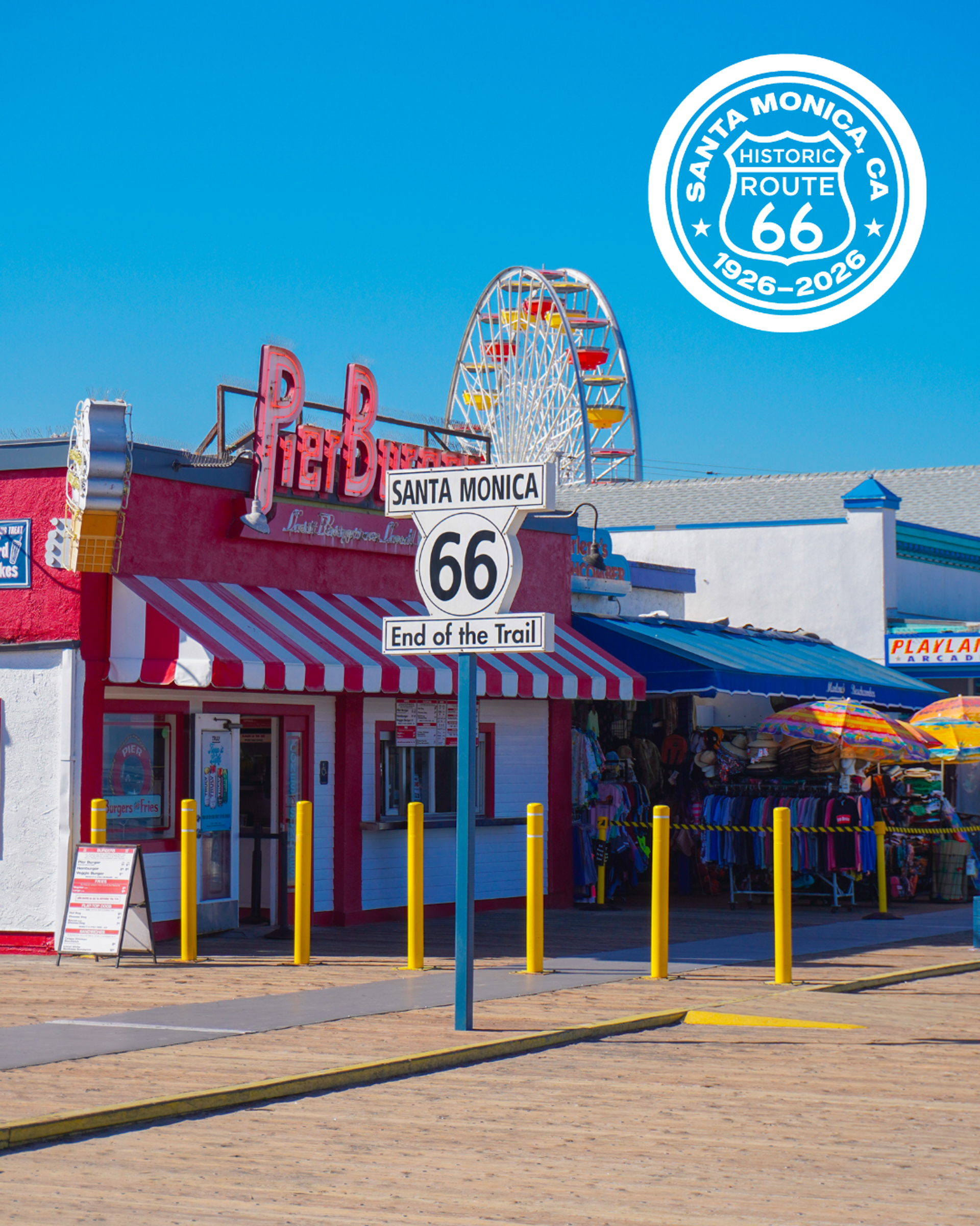 Celebrate the close of the journey at the iconic Santa Monica Pier, home to the famous “End of the Trail” sign, where the road gives way to ocean views and a relaxed coastal stay.